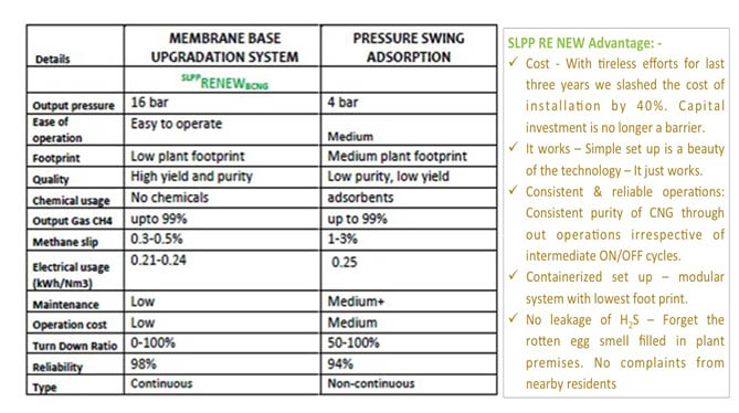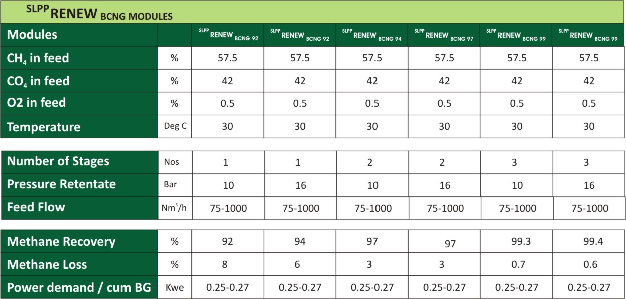 SLPP RE NEW BCNG Biogas Upgradation Module based on Hollow Fibre Membrane Technology to upgrade Biogas to Bio-CNG ensuring the national statutory standards for Auto Fuel, Cooking gas and Gas grid connectivity. Our first commercial Upgradation module in South Asia from waste to Bio-CNG installed in 2017. Application of Biogas in a specific way of utilisation depends on technical, economic and legislative factors which are moreover limited by social and locality demand. The utilisation of Biogas for Bio-Methane production represents one of the thriftiest methods to create a fossil free environment and to optimise energy utility.